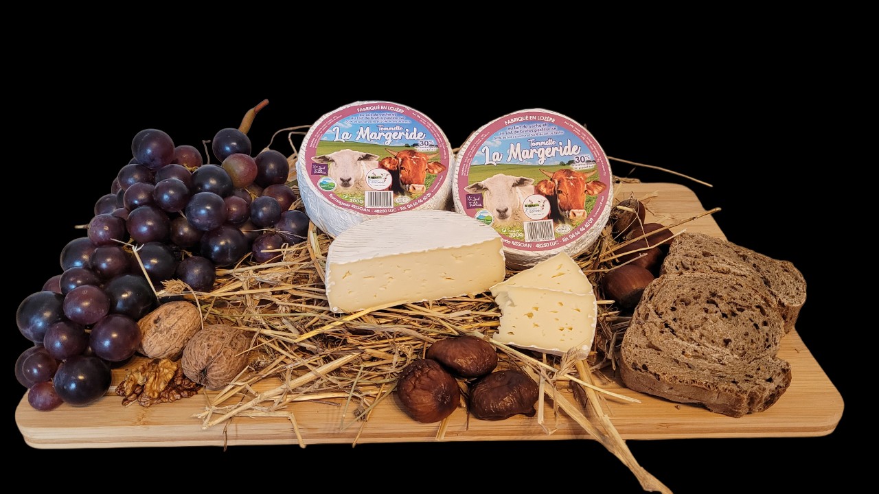 La TOMMETTE LA MARGERIDE est un fromage composé de 50% de lait entier de vache et de 50% de lait entier de brebis pasteurisé. Sa pâte est onctueuse, douce, fondante et blanche. Idéale sur un plateau de fromages, en fin de repas ou même en cuisine pour sublimer vos recettes, elle séduira les palais les plus fins.